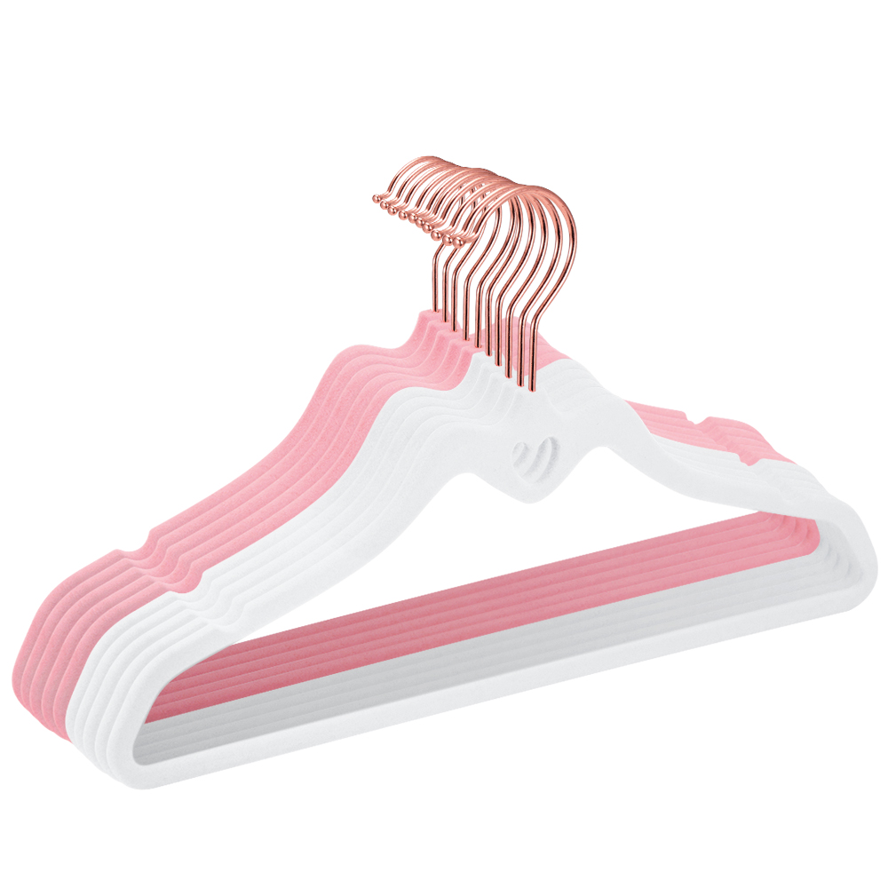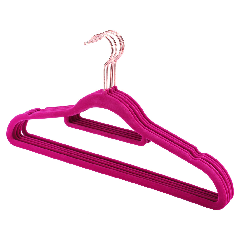 ไม้แขวนเสื้อผ้ากำมะหยี่สีชมพูกันลื่น