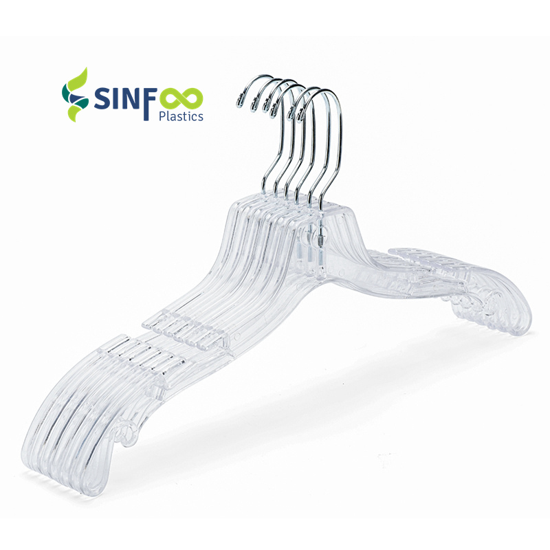 ขายส่ง 17" ผ้าใสโปร่งใส PS ไม้แขวนเสื้อพลาสติกหนาสําหรับเสื้อผ้า